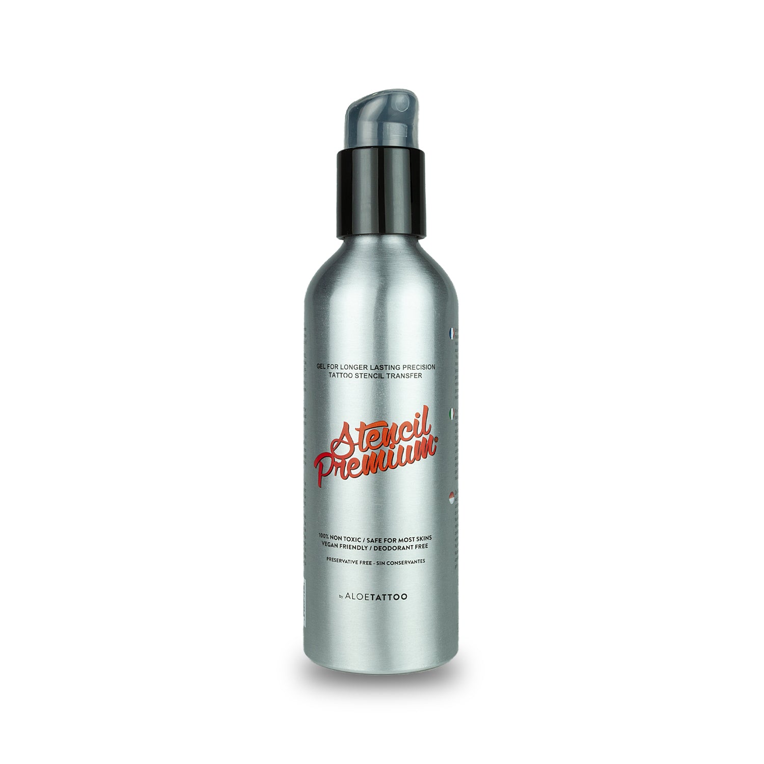 Das Stencil Premium Gel von Aloe Tattoo® ermöglicht eine präzise und realistische Übertragung von Tattoo-Designs von Papier auf die Haut. Die transparente Formel ist sanft, hautfreundlich und frei von Konservierungsstoffen, Duftstoffen und Deodorants. Sie ist nicht toxisch, nicht klebrig und sorgt dafür, dass die Vorlage zuverlässig auf der Haut haftet – genau so lange, wie der Künstler sie benötigt. Dank des praktischen Pumpspenders lässt sich das Gel hygienisch und komfortabel entnehmen, ideal für den professionellen Studioeinsatz.